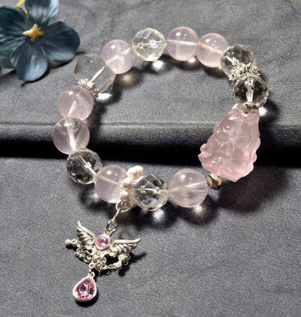 Natural Rose Quartz Crystal Bracelet, Rose Quartz Bead Bracelet, Symbolizing Peach Blossom Luck