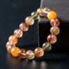 In the wonderful world of jewelry, this rutilated quartz bracelet is like a brilliant star, exuding a unique and charming allure. Beads of different colors are skillfully intertwined, ranging from the warm and bright orange, to the fresh and elegant light green, and then to the deep and steady brown. It’s as if nature has overturned the palette, carefully condensing the gorgeous and colorful autumn colors on this small bracelet.