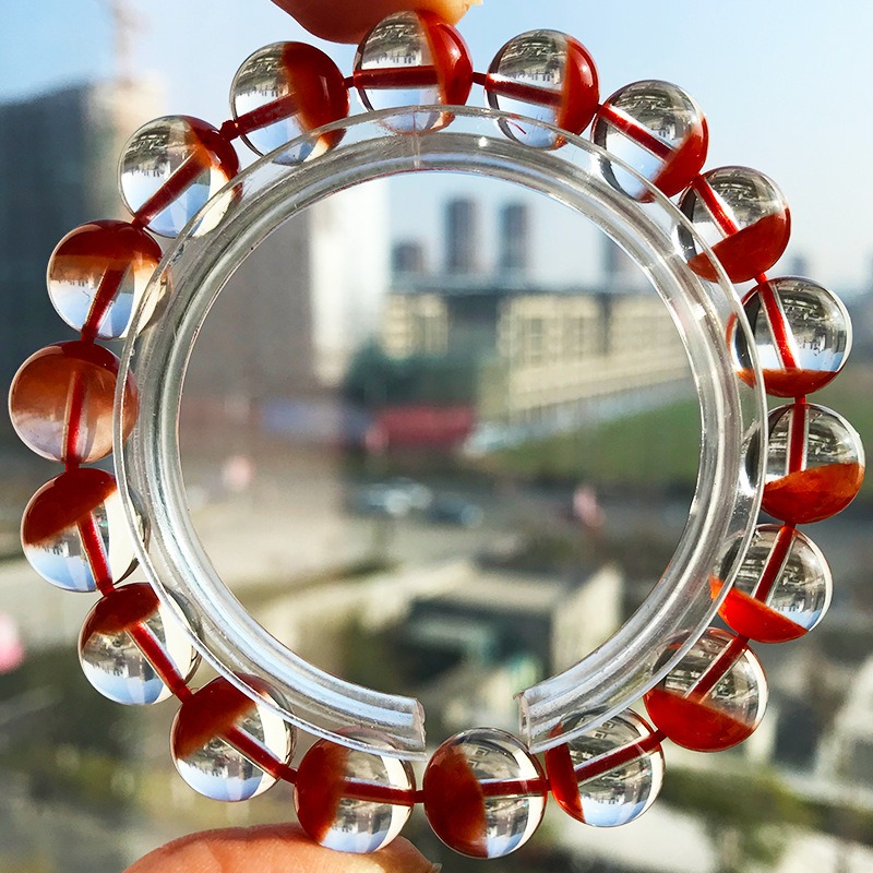 This red hairlike quartz crystal bracelet is just like the code of wealth woven by fate. Each crystal is like a burning flame and also resembles a surging tide of red gold, emitting a blazing and alluring luster. The red hairlike quartz crystal is regarded as an auspicious treasure for attracting wealth and good fortune. The intertwined red inclusions are just like threads of wealth, closely connecting luck and abundance.